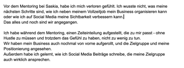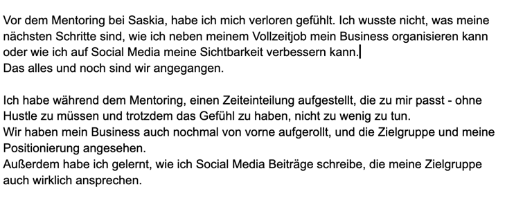 Heute unterstütze ich Frauen dabei, genau diesen Weg abzukürzen, mit klarer Strategie, echter Struktur und einem Business, das sich zu 100 % nach ihnen anfühlt.